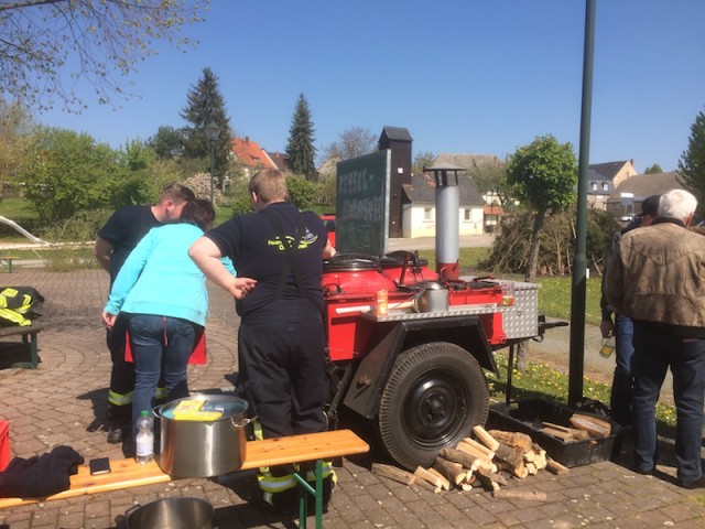 Auch 2017 stand der Vortag zum 1. Mai im Zeichen des Maibaumsetzens des Feuerwehrvereins. In diesem Jahr wurde diese Veranstaltung als musikalischer Frühschoppen, abweichend zu den Vorjahren, gestaltet. Ab 11:00 Uhr luden die Verantwortlichen zu Kesselgulasch aus der Feldküche, welcher reißenden Absatz fand.