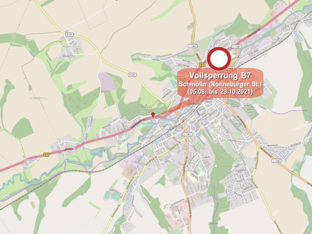 Sperrung der B7 in Schmölln (Ronneburger Straße)