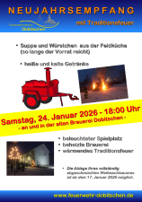 Der Feuerwehrverein Dobitschen lädt am Samstag, den 24.01.2026 zum traditionellen "Neujahrsempfang mit Traditionsfeuer" ab 18:00 Uhr an und in die alte Brauerei ein.