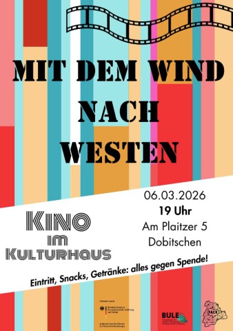 Am Freitag, den 6. März startet unsere neue Reihe Kino im Kulturhaus mit dem Film: "Mit dem Wind nach Westen". Der Film basiert auf einer waren Begebenheit: Zwei Familien aus Thüringen wagen die spektakuläre Flucht aus der DDR mit einem selbst gebauten Heißluftballon. Weiltere Infos folgen!