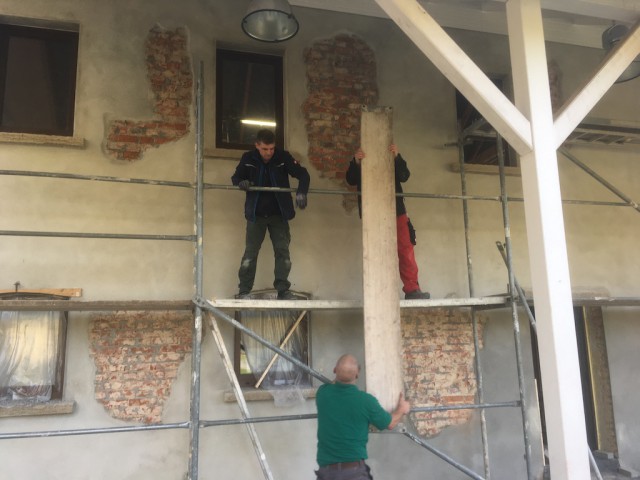 Nachdem am 16.10.2021 im Rahmen des Arbeitseinsatzes des Dorf- und Fördervereins eine Fassadenseite der alten Brauerei weitgehend mit frischem Außenputz versehen wurde, folgten im Anschluss weitere Arbeiten an dieser.