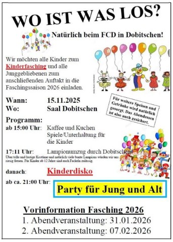 Kinderfasching und Faschingsauftakt 2026Wo ist was los? ... Natürlich beim FCD in Dobitschen!